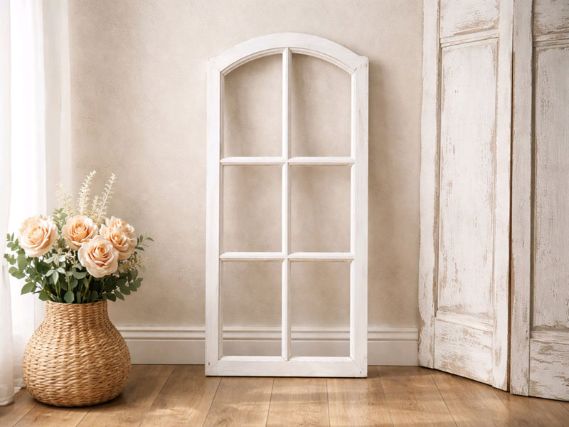 - Großes Deko Holzfenster mit Rundbogen und Sprossen