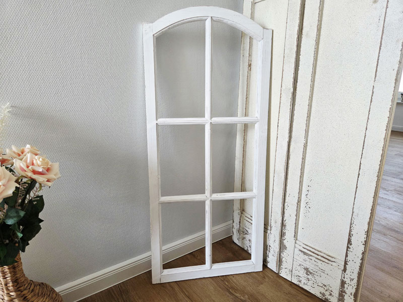 Großes Deko Shabby Chic Holzfenster mit Rundbogen & Sprossen