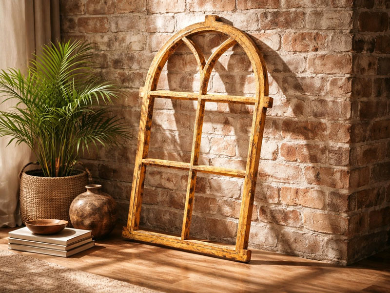 Klassisches Stallfenster im Hochformat mit Sprossen und Stichbogen