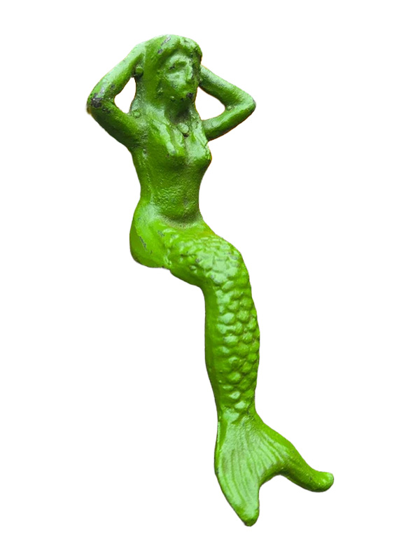 2er Set kleine gusseiserne Figuren "Meerjungfrauen" grün Kantenhocker