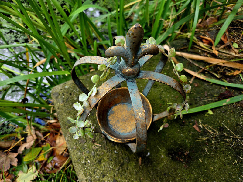 Antik Pflanzkrone "Fleur de lis" 24cm Gartenkrone Kupferpatina