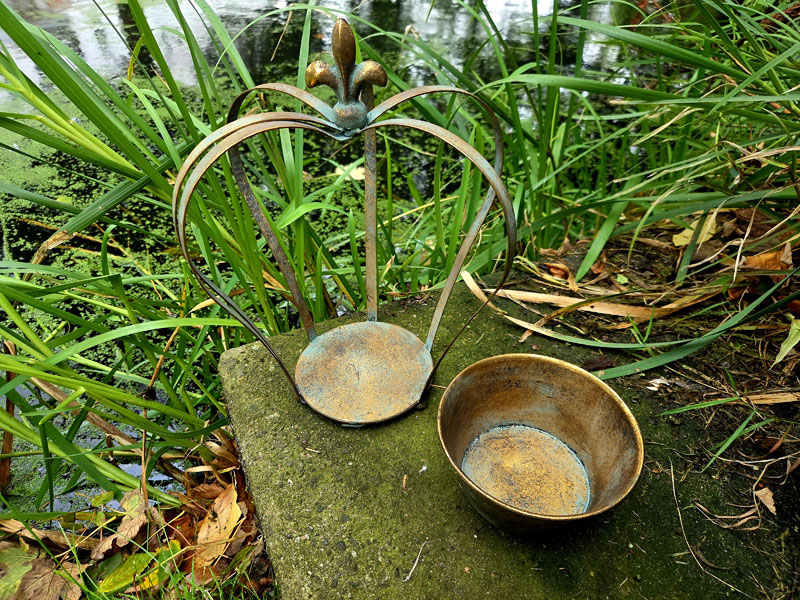 Antik Pflanzkrone "Fleur de lis" 33cm Gartenkrone Kupferpatina