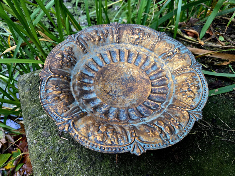 Antik Vogeltränke "Kupferpatina" 23cm Ø Aluguss