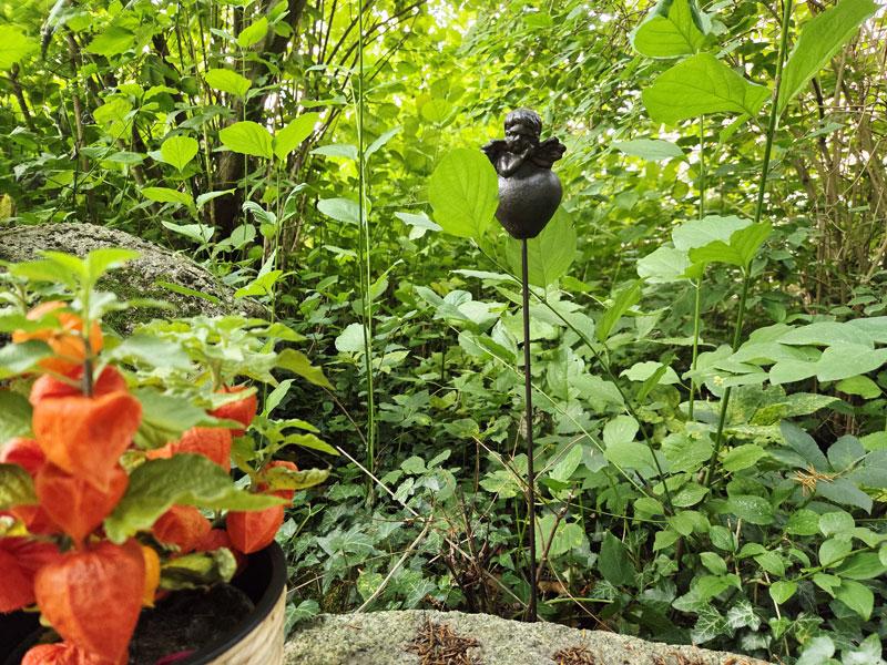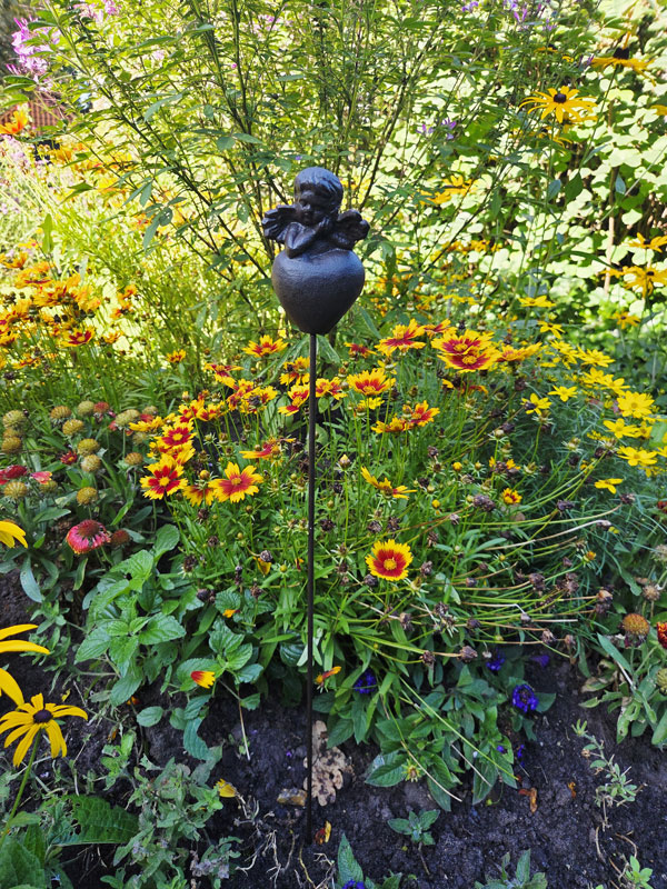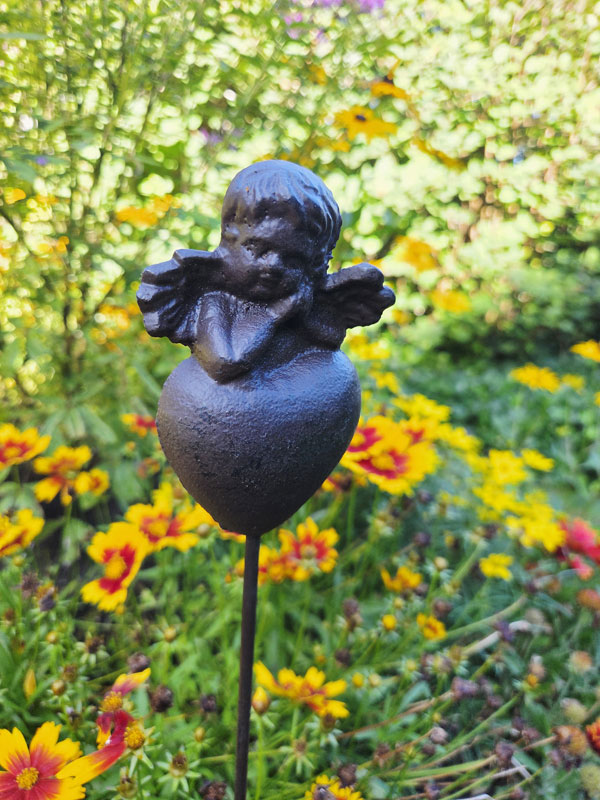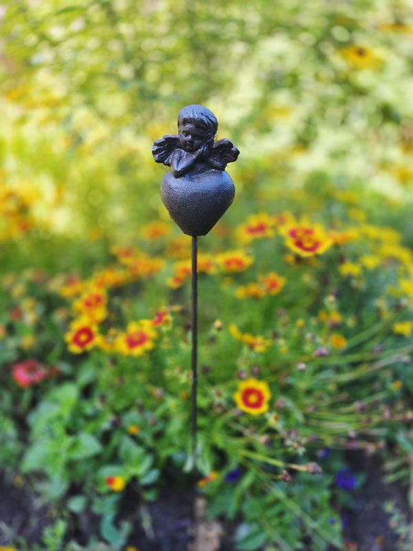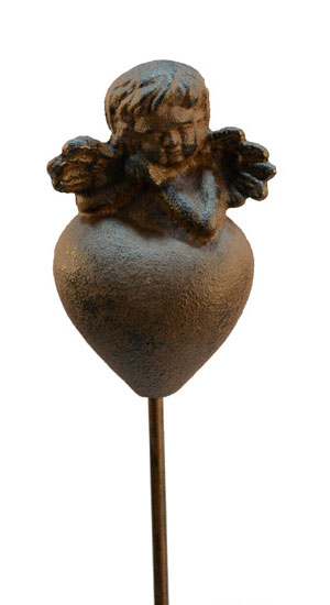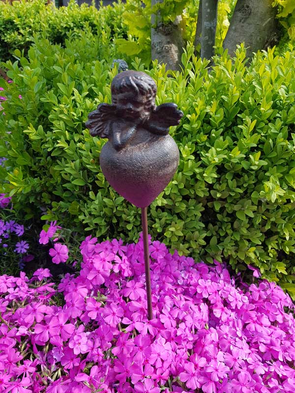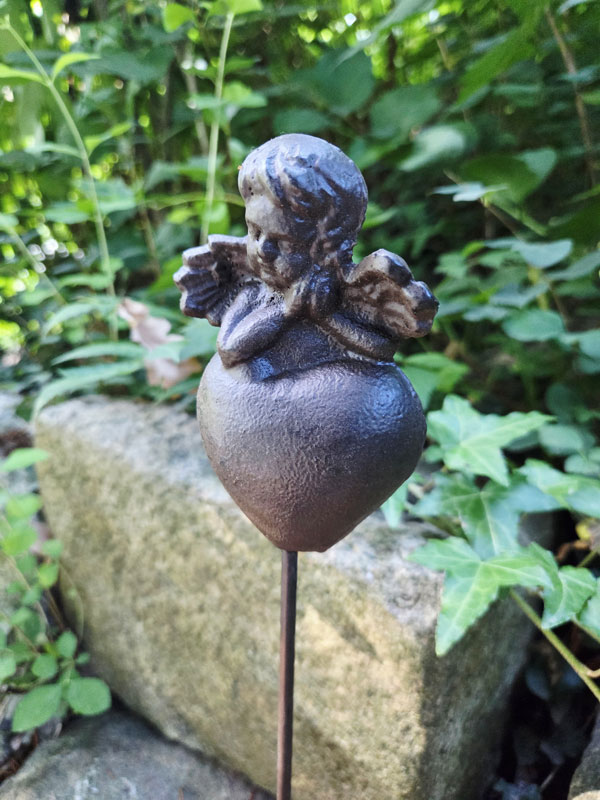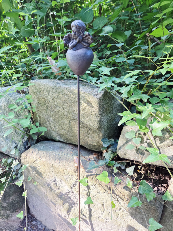 - Gartenstab Herz mit Engelchen und betenden Händen aus Gusseisen