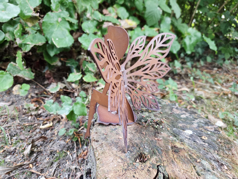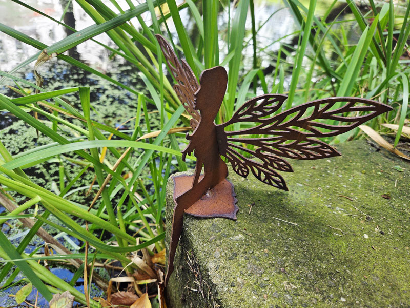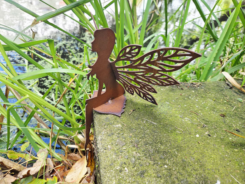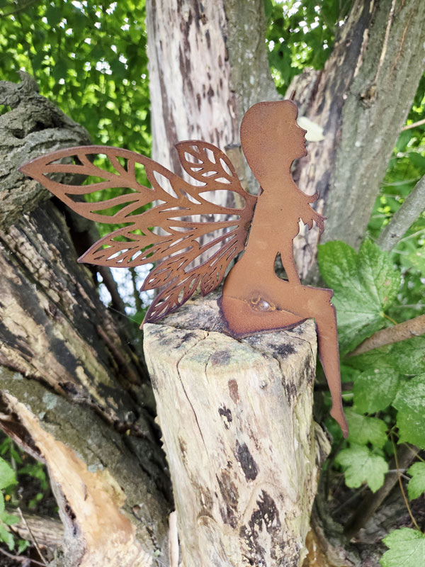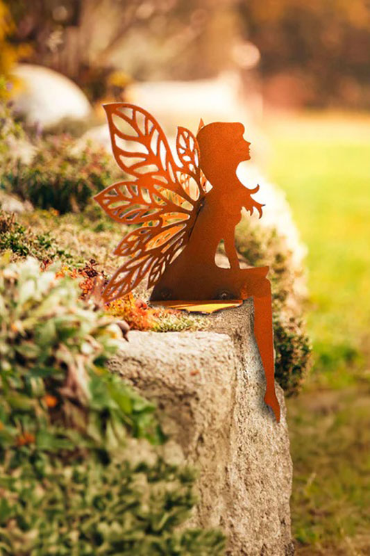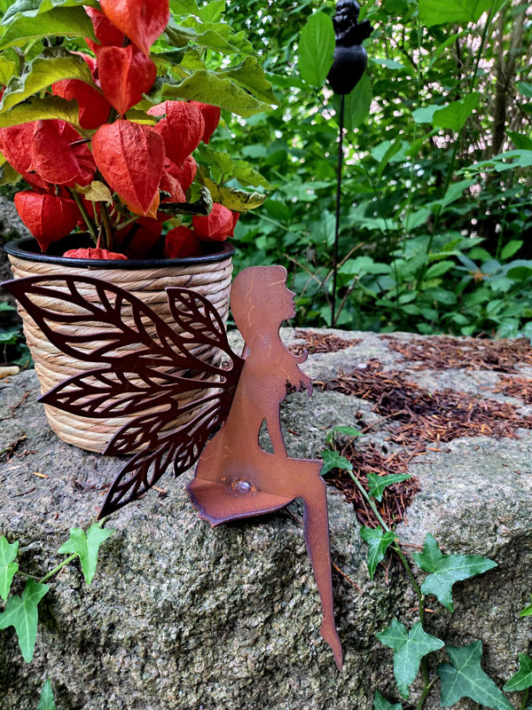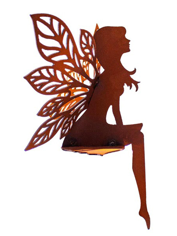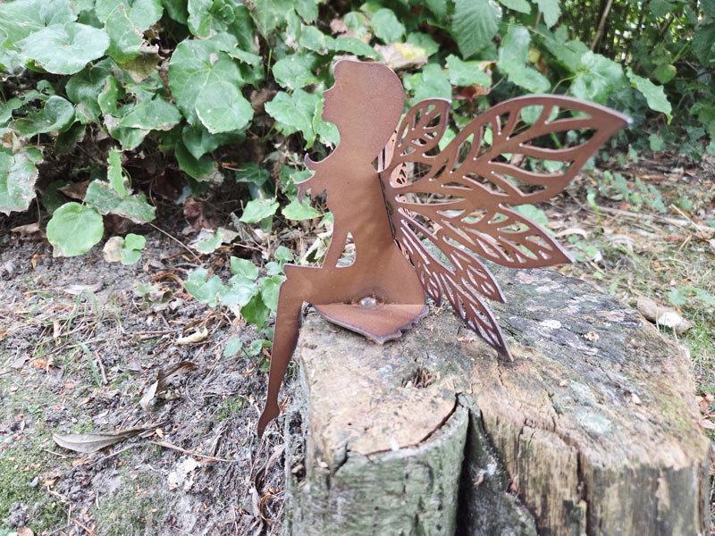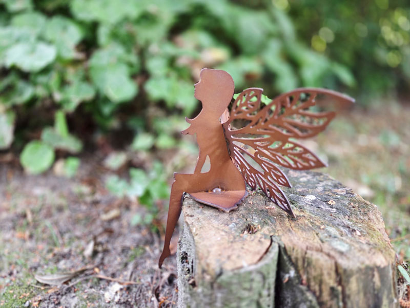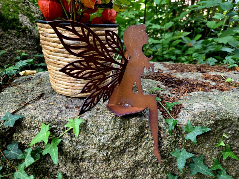 - Hochwertige Deko Elfe aus Laser-Konturgeschnittenem Metall mit kräftiger Edelrostpatina