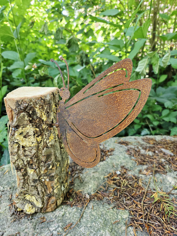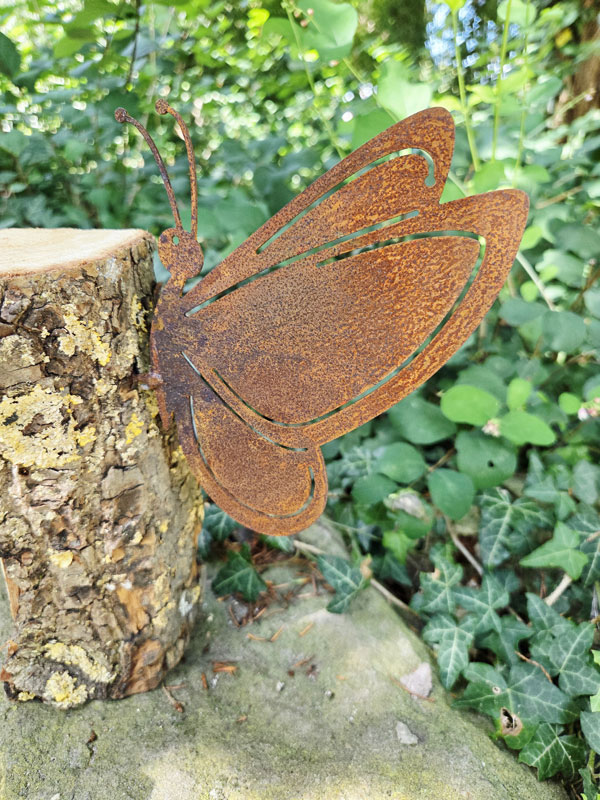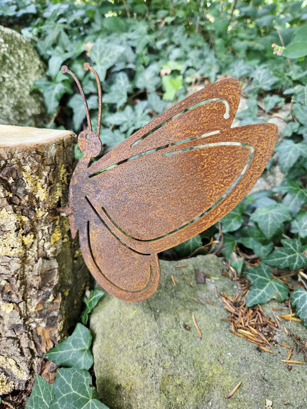 Jeder Schmetterling ist ein Unikat, da sich die Rostpatina im Laufe der Zeit individuell verändert. So entsteht ein ganz besonderer, lebendiger Blickfang für deine Outdoor-Deko.