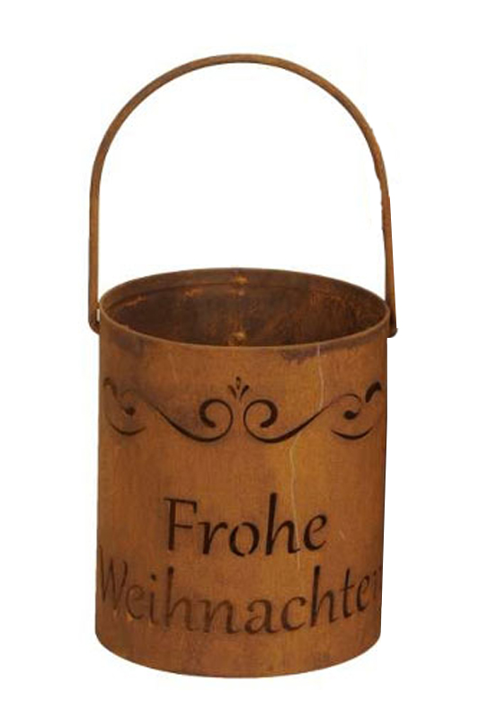 Edelrost Windlicht zum Hängen oder Stellen "Frohe Weihnachten" 25cm Leuchtfeuer
