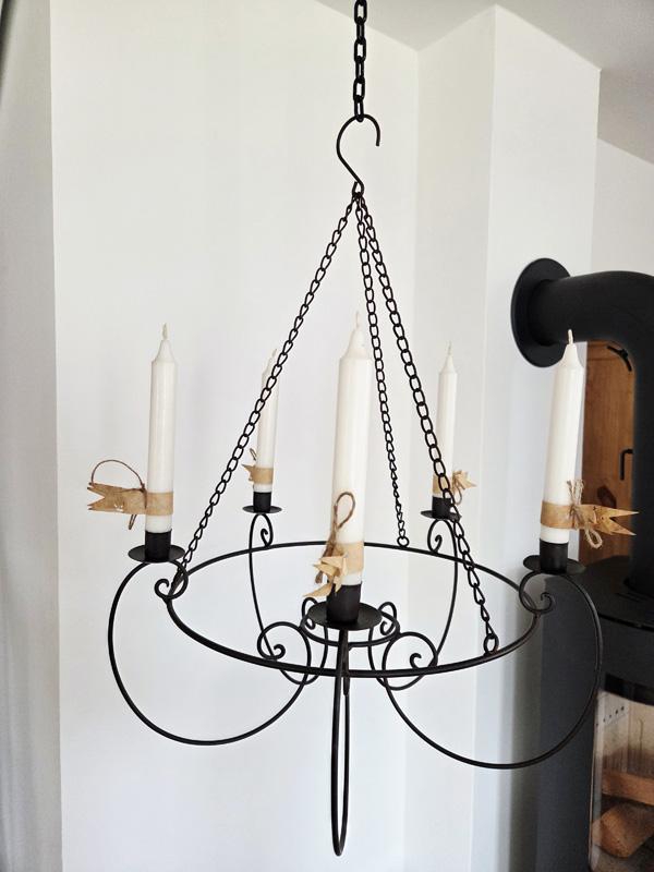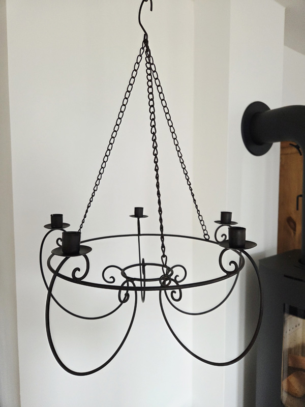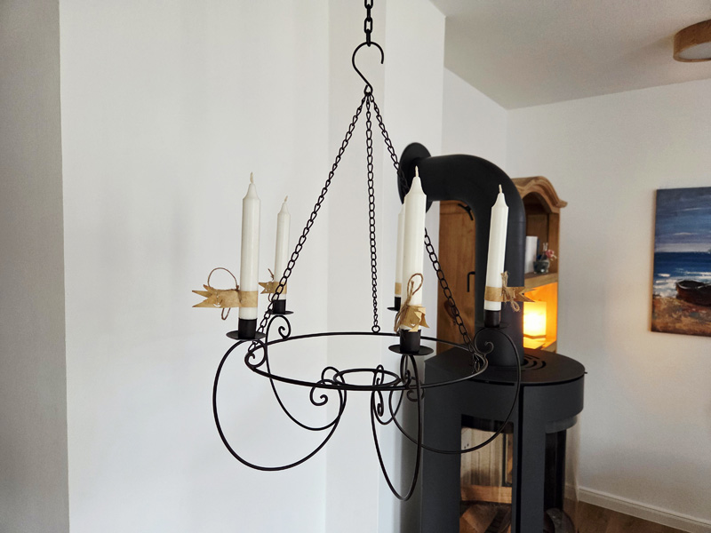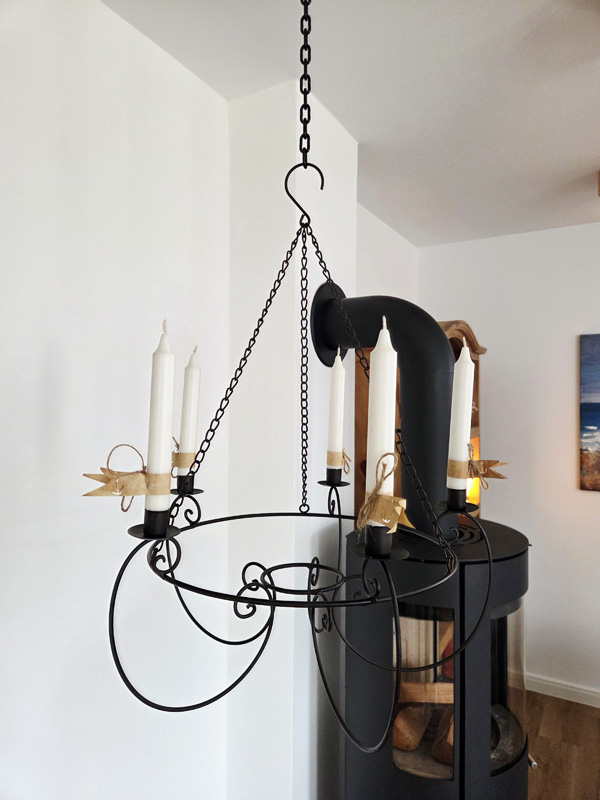 - Hänge-Kerzenhalter mit Kerzentellern für fünf Stabkerzen