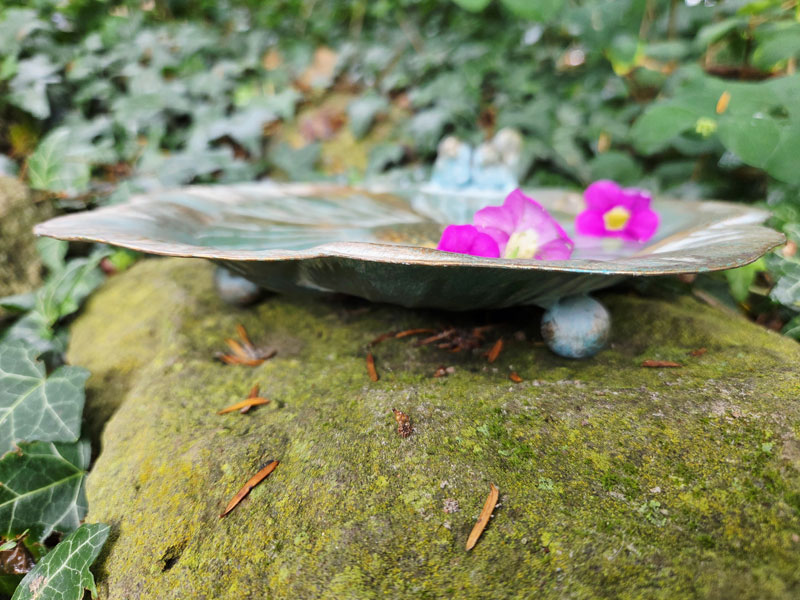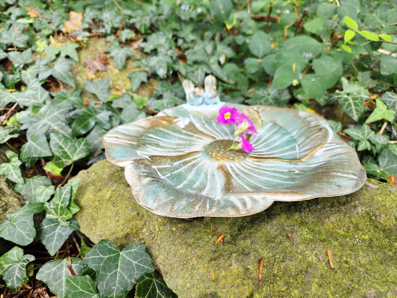 Flache Vogeltränke "Blüte" 24cm Ø Aluguss