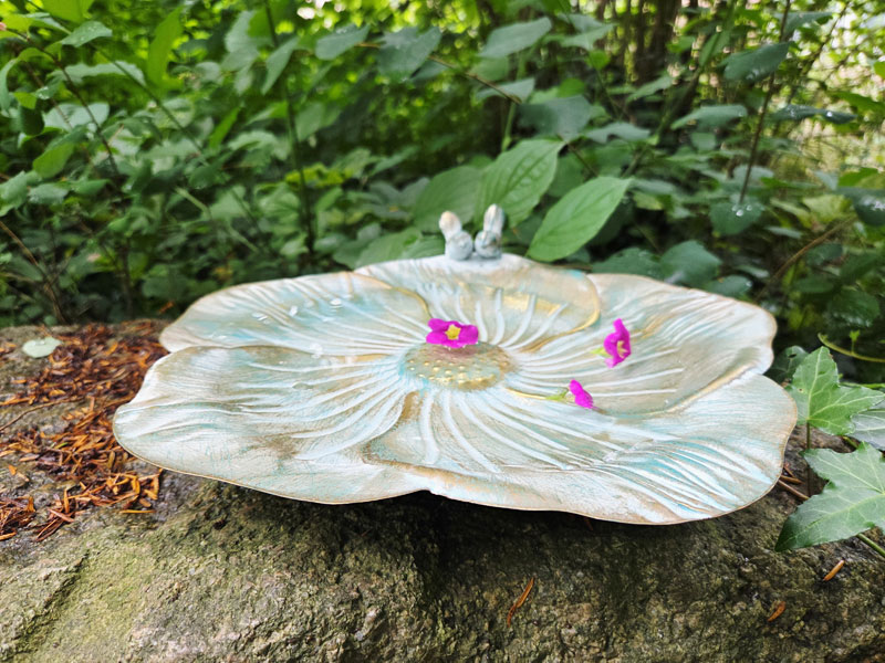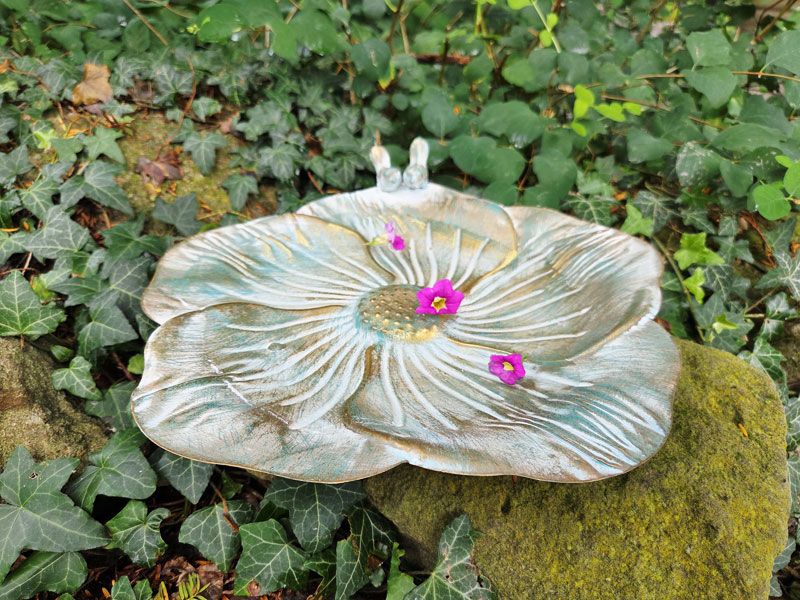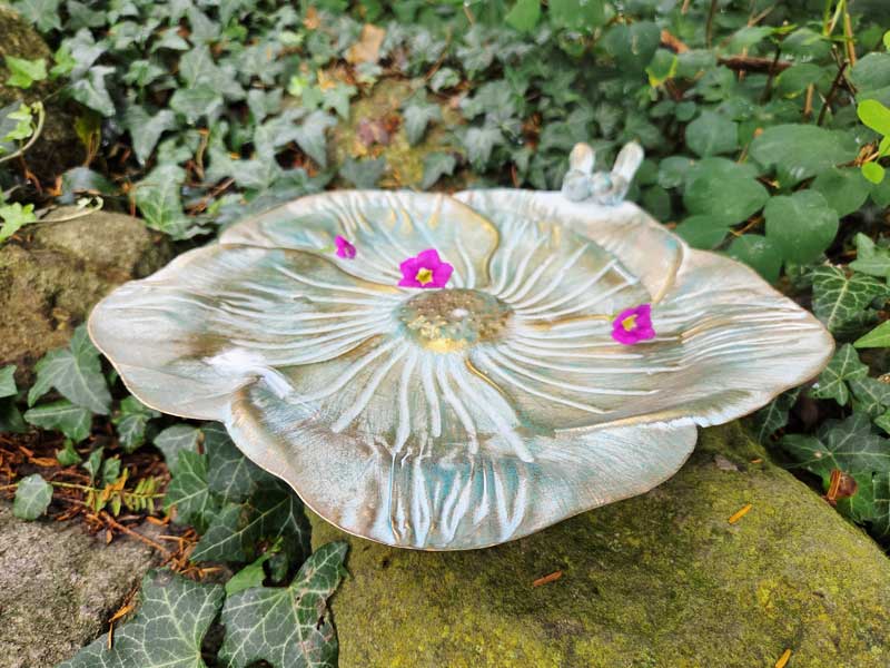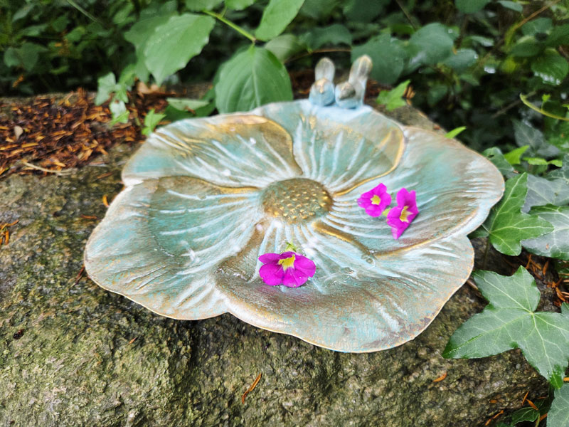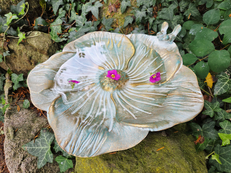 - Große Vogeltränke "Blüte" aus rostfreiem Aluguss gefertigt