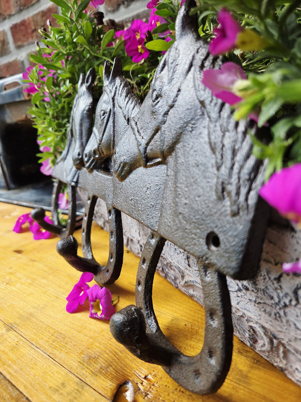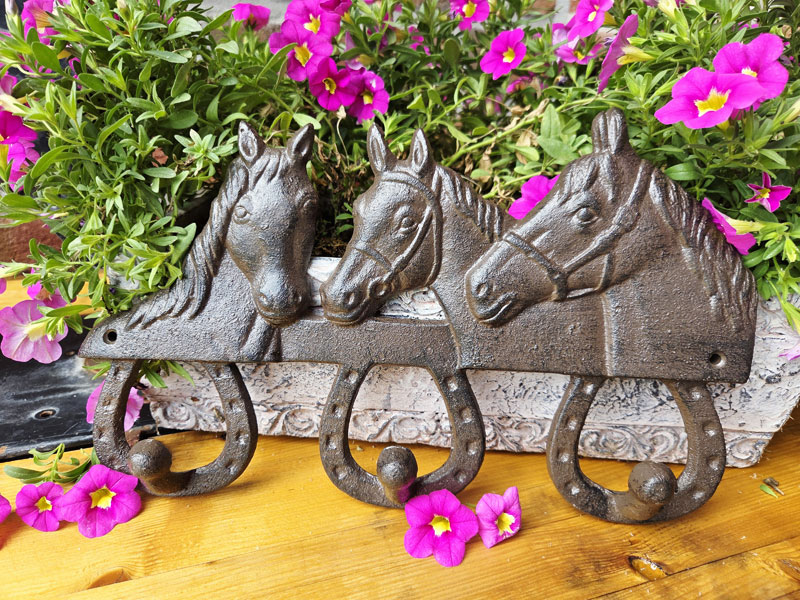 Garderoben-Haken 3er Wandhaken "Pferde" Gusseisen