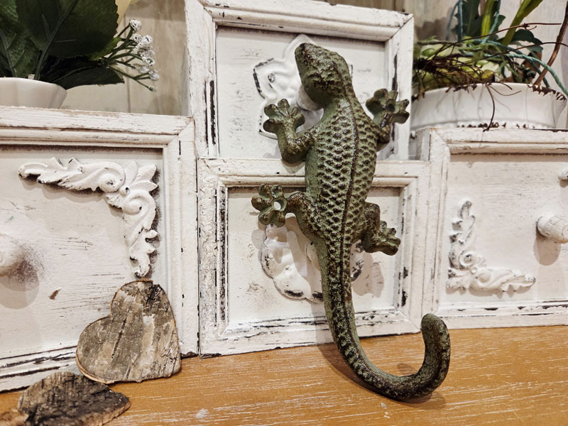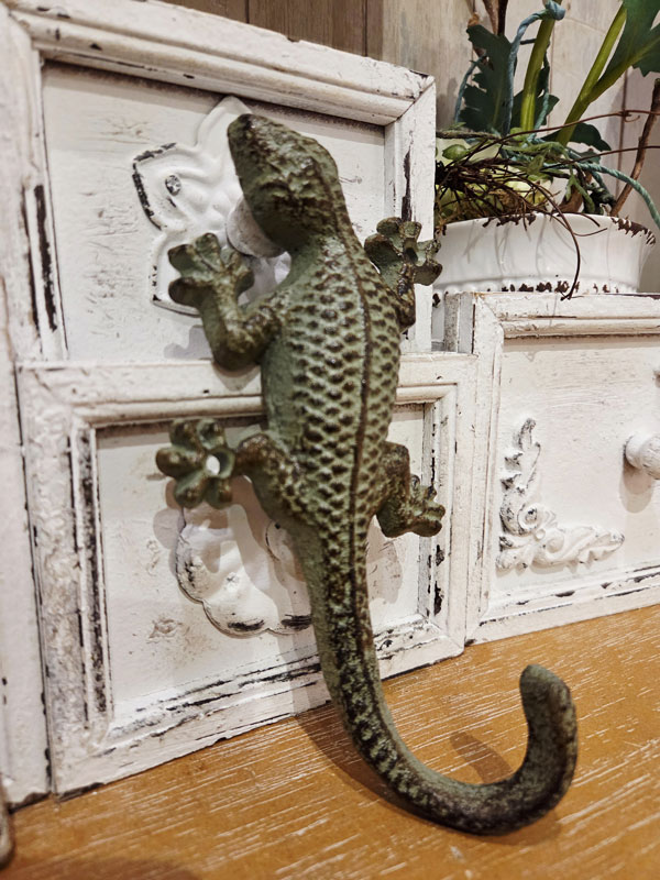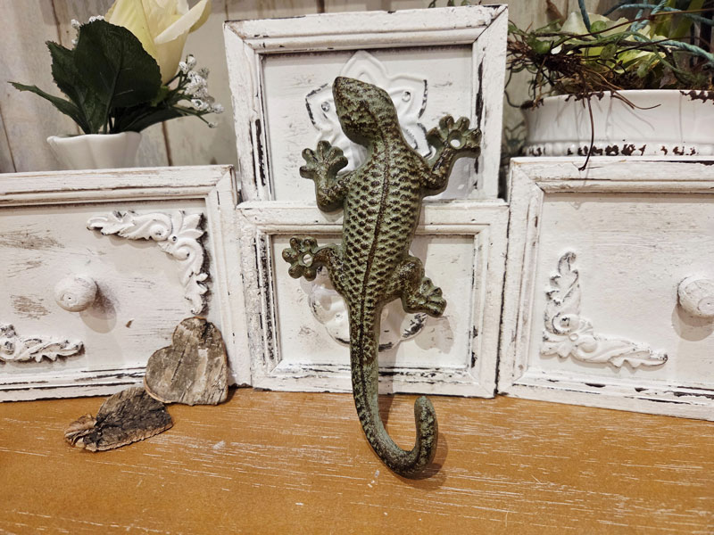 Gusseiserner Wandhaken "Gecko" mit Antiklackierung