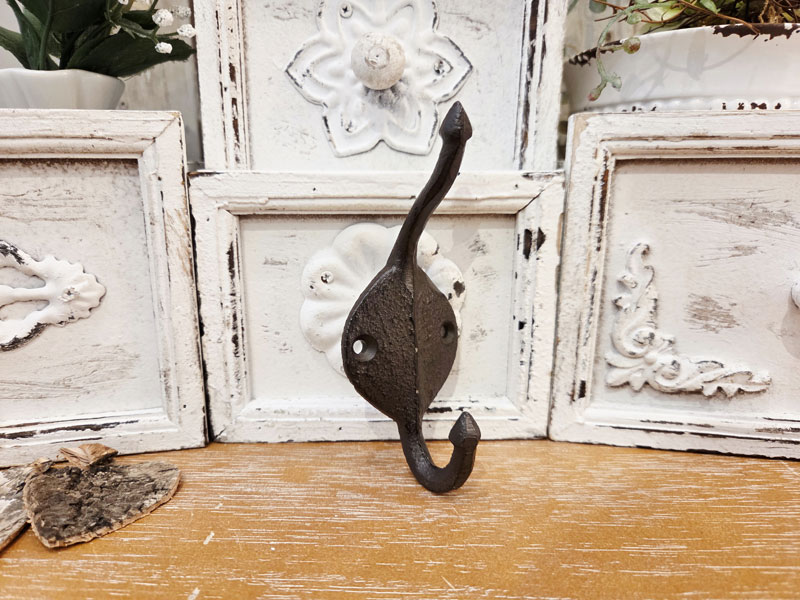 Ob im Flur für Jacken und Taschen, in der Küche für Handtücher oder im Gartenhaus für Werkzeuge – der Haken ist vielseitig einsetzbar und besonders robust. Das schwere Gusseisen sorgt für Stabilität und eine lange Lebensdauer.