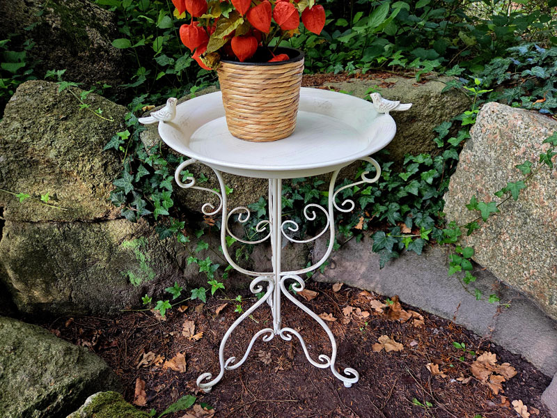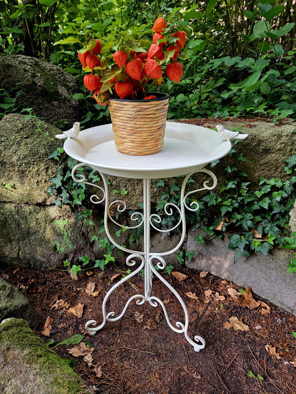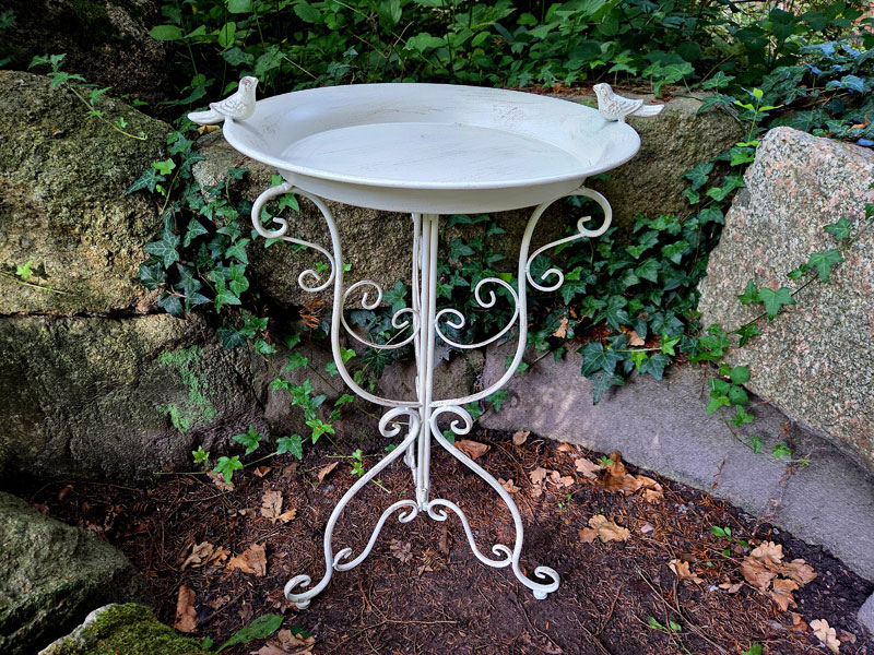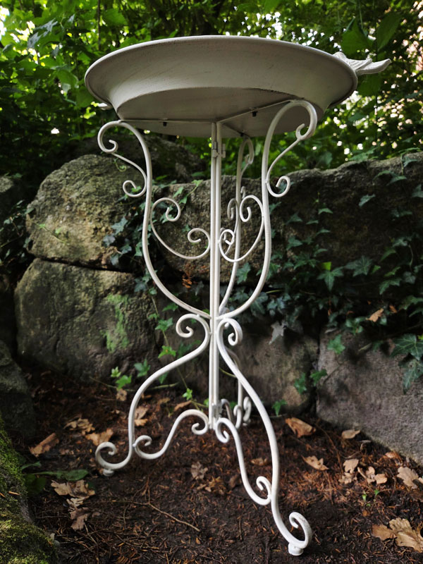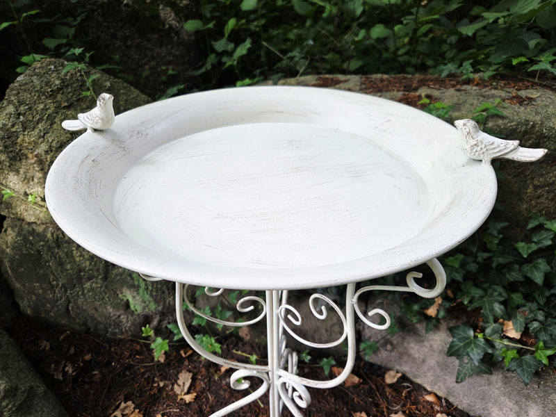 - Vogelbad/Vogeltränke aus Metall (rostfreier Aluguss) gefertigt und im Shabby Chic altweiß lackiert