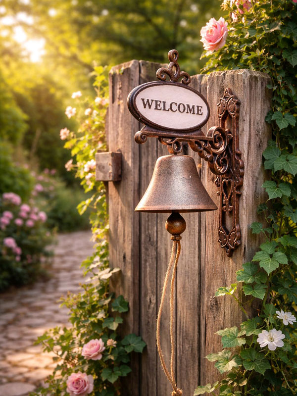 Gartenglocke mit freundlichem Schriftzug „Welcome“