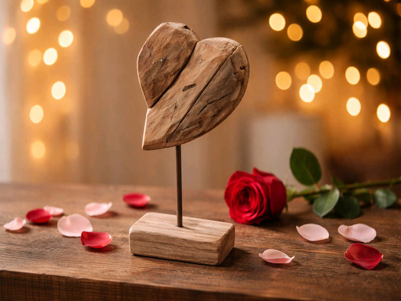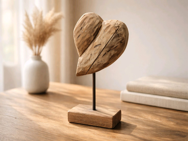Dekoratives Herz auf Standfuß "Treibholz" aus recyceltem Teakholz gefertigt