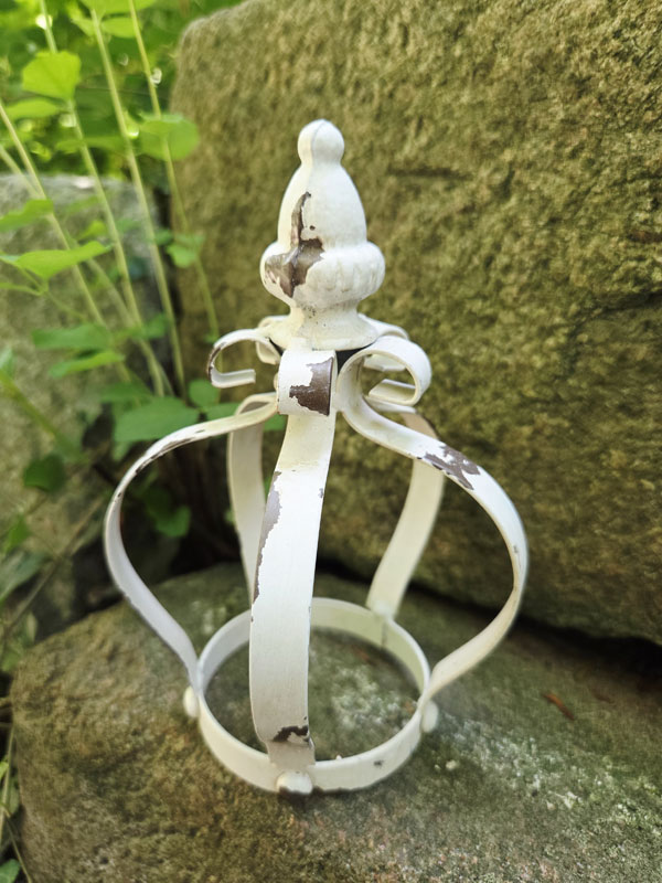 Ob als romantische Tischdekoration, illuminiert mit einem Windlicht oder als nostalgisches Detail im Beet – die Krone lässt sich vielseitig einsetzen und harmoniert perfekt mit rustikalen, verspielten und natürlichen Einrichtungsstilen.