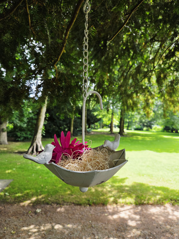 Bezaubernde Hängeschale "Regenschirm" altweiß lackiert