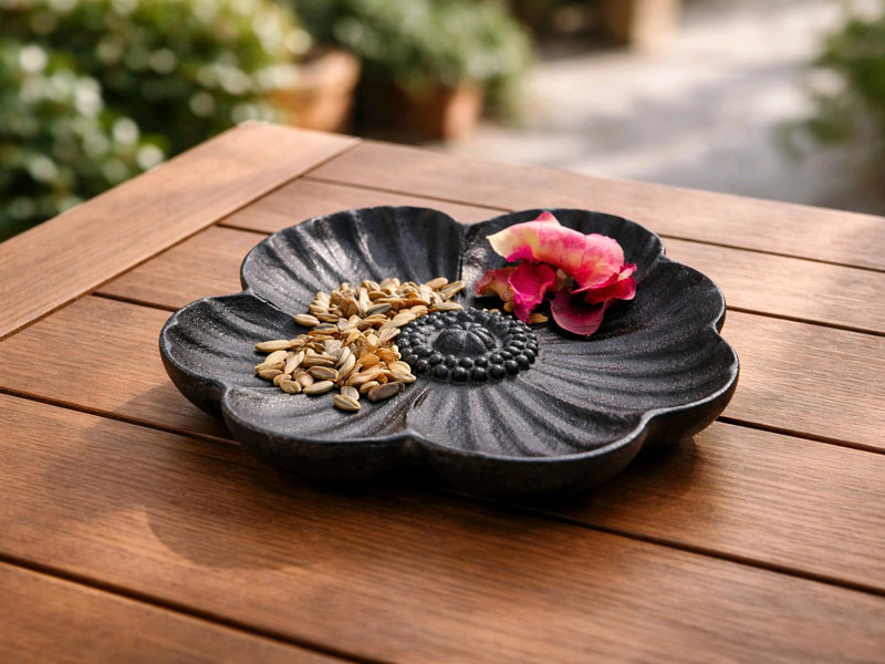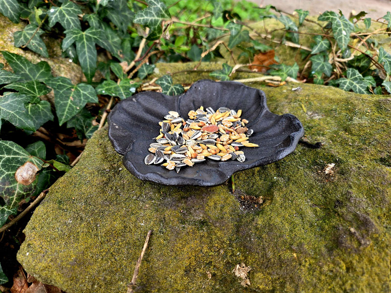 Kleine Vogeltränke Futterschale "Blattform" Modell B Gusseisen