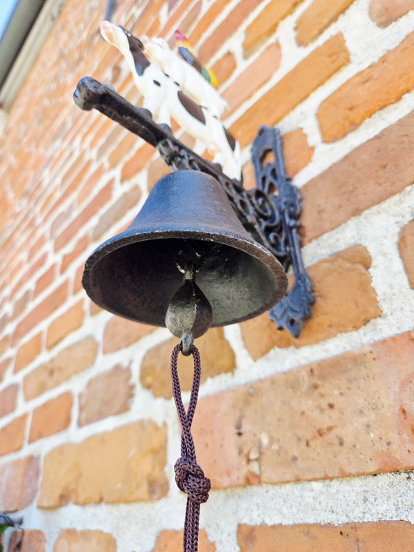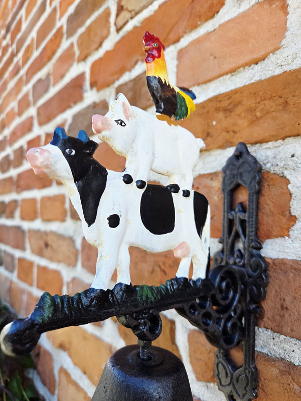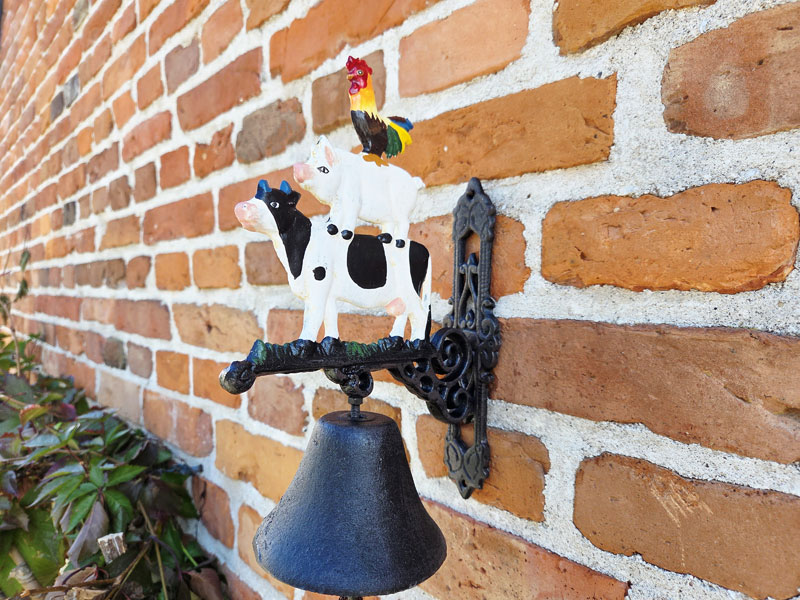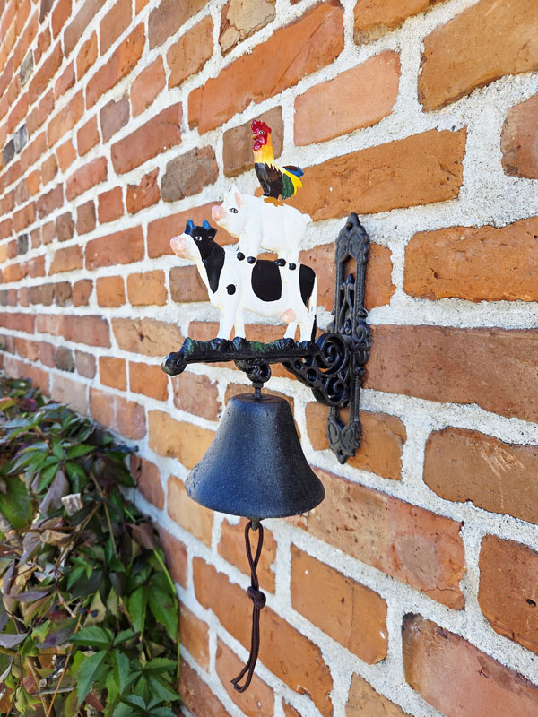 - Gartenglocke aus hochwertigem, massiven Gusseisen mit handlackiertem Motiv "Kuh, Schwein & Hahn"