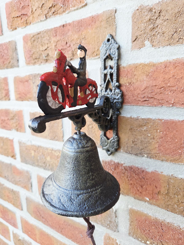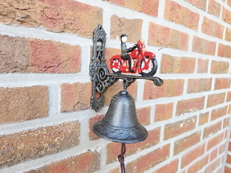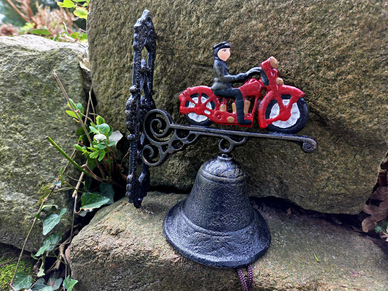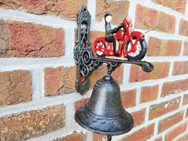 - Gartenglocke aus hochwertigem, massiven Gusseisen mit handlackiertem Motiv "Motorrad mit Biker"