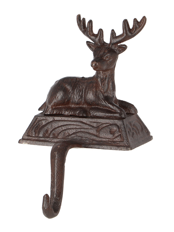 Mache deinen Kamin oder deine Fensterbank zum festlichen Highlight – mit diesem charmanten Nikolausstrumpfhalter aus Gusseisen mit Hirschfigur.