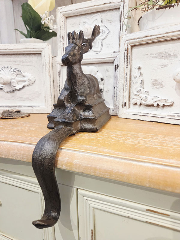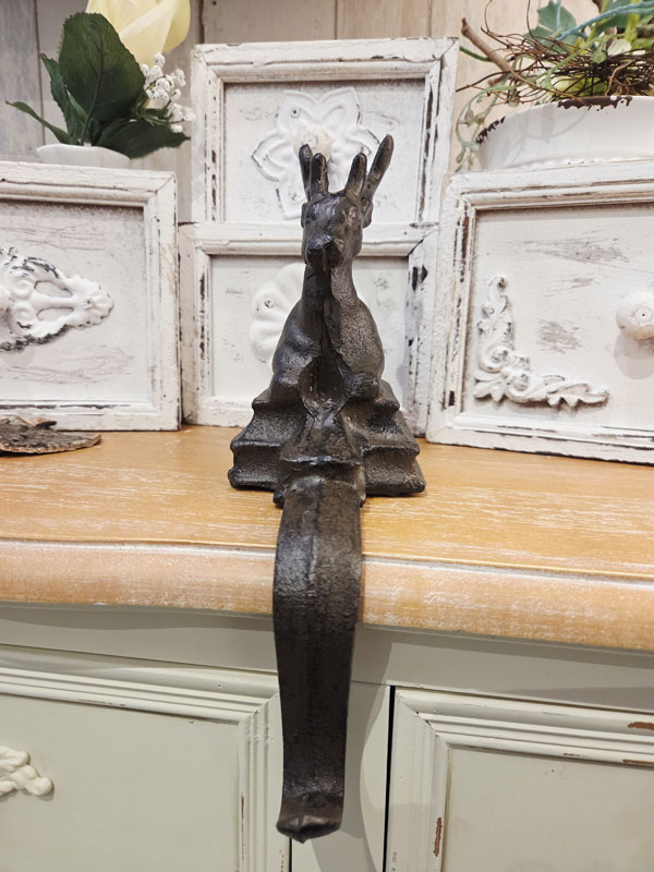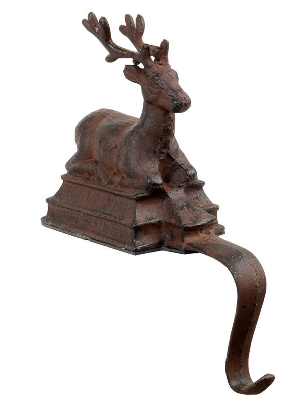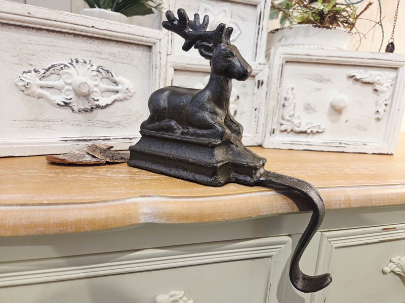 Mache deinen Kamin oder deine Fensterbank zum festlichen Highlight – mit diesem charmanten Nikolausstrumpfhalter aus Gusseisen mit Hirschfigur.