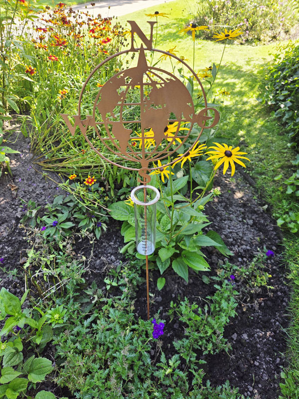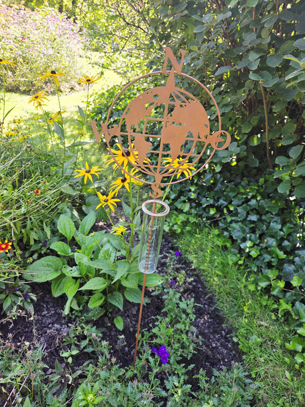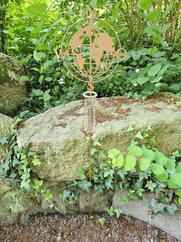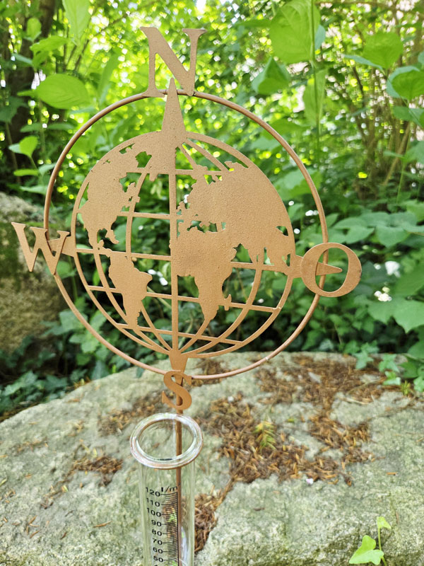 - Beetstecker Regenmesser mit Einsatz aus Echtglas und Weltkarte mit Kompassrose zum Dekorieren und Bepflanzen