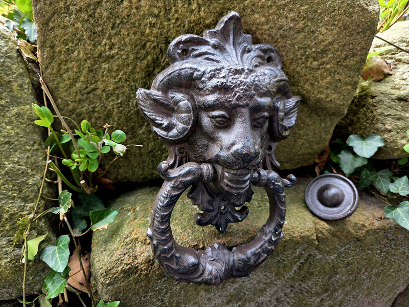 Neben seiner dekorativen Wirkung erfüllt der Türklopfer selbstverständlich auch zuverlässig seinen Zweck und liegt angenehm schwer in der Hand.