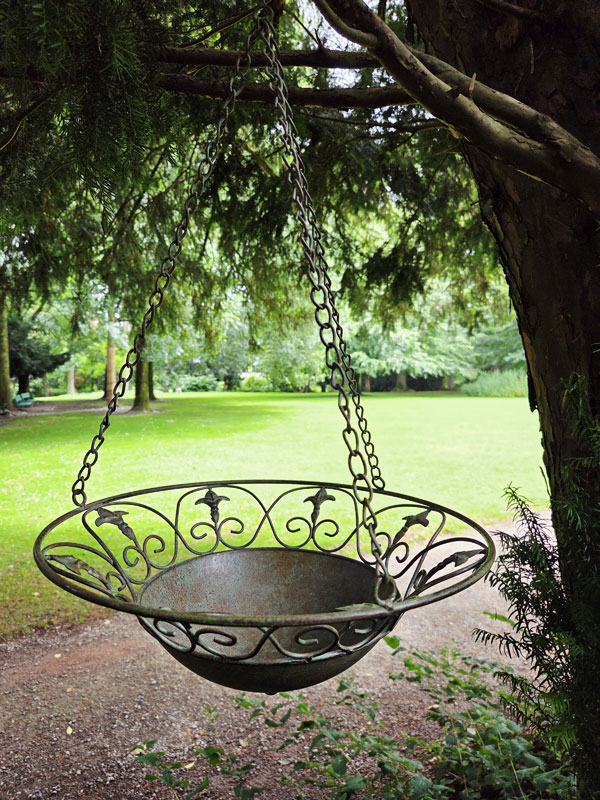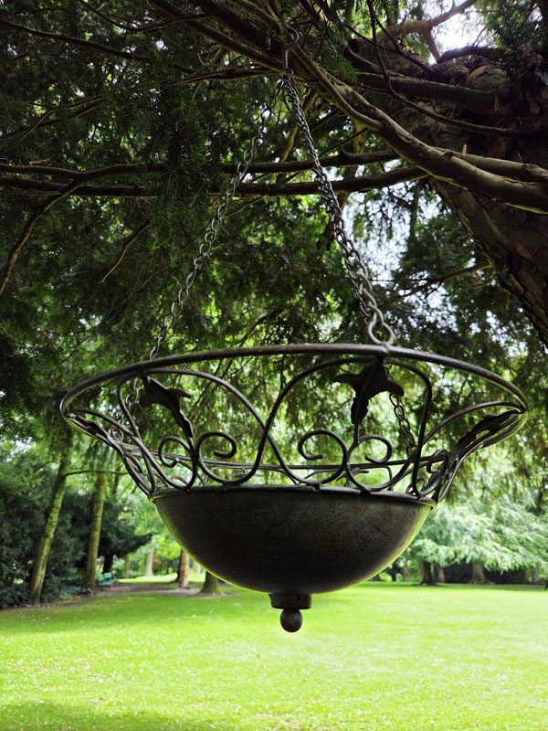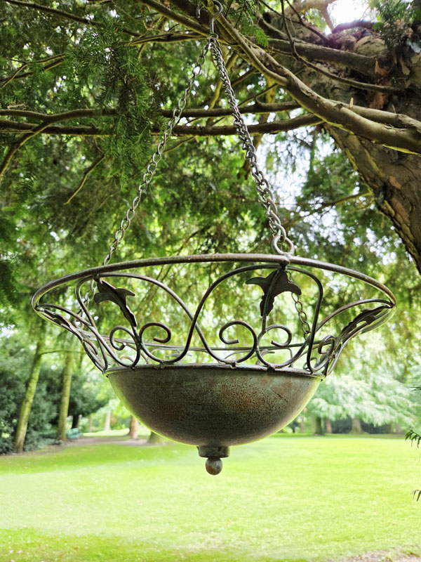 Dank der stabilen Aufhängung eignet sie sich nicht nur für Blumenarrangements, sondern kann auch als hängende Obstschale oder Vogeltränke verwendet werden.