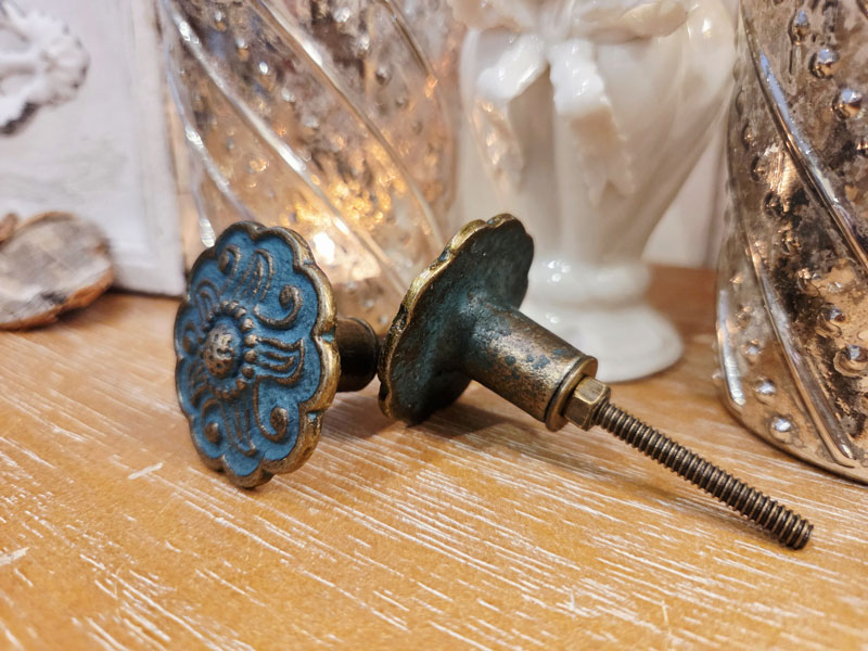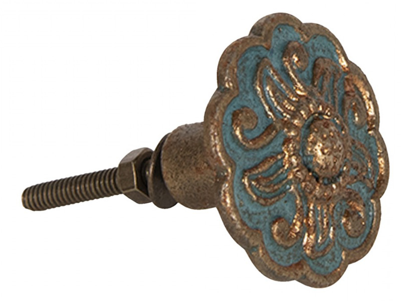 Nostalgischer Eisen Möbelknopf "Petrol-Kupfer ornamentalisch"