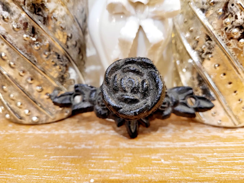 Nostalgischer Gusseisen Möbelknopf "Rose" auf Platte