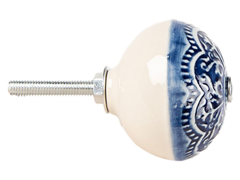 - Blau-cremefarbener Möbelknauf mit ornamentalischem Muster aus glänzender Keramik gefertigt