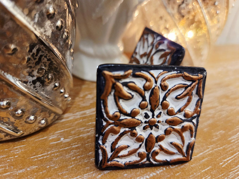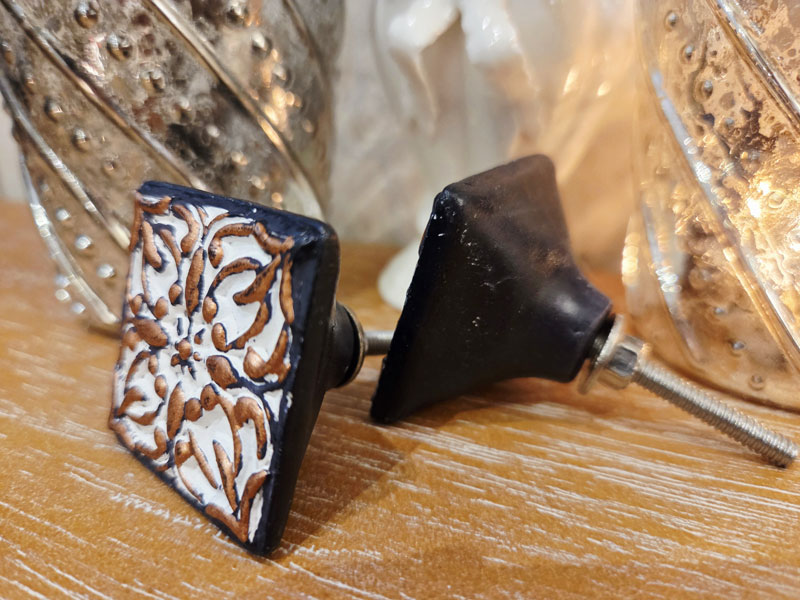 - Quadratischer Möbelknauf im Vintage-Look aus Keramik gefertigt