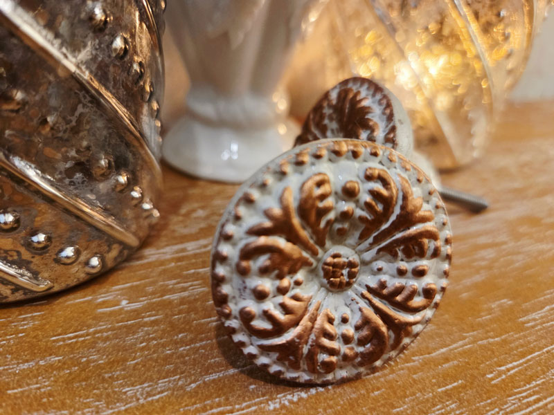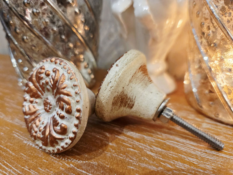 - Möbelknauf im Vintage-Look aus Keramik mit kupferfarbenen Verzierungen gefertigt