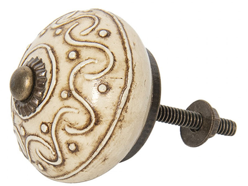 Nostalgischer Keramik Möbelknopf "creme-weiß rund"