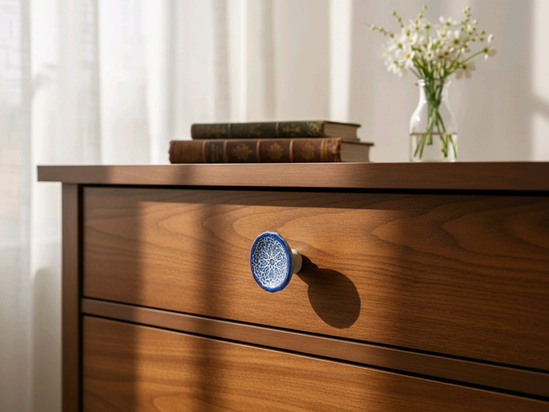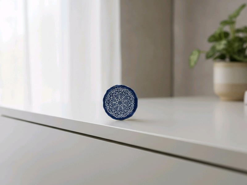 - Feiner Möbelknauf aus blauer, glänzender Keramik gefertigt