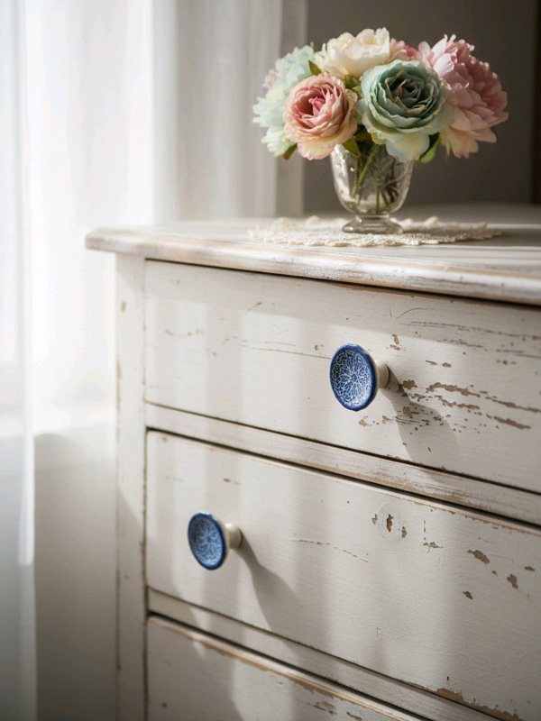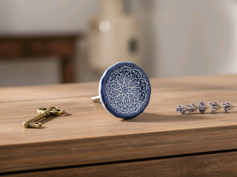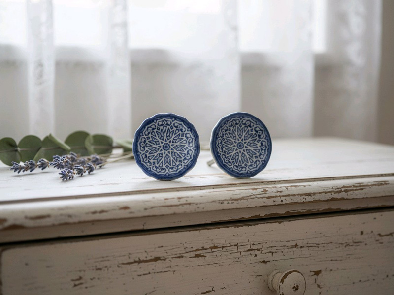 Nostalgischer Keramik Möbelknopf "cremeweiß-königsblau"