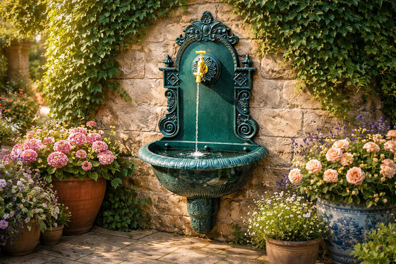 Einerseits praktisch zum Händewaschen nach verrichteter Gartenarbeit oder zum Befüllen der Gießkanne, andererseits eine dekorative Erweiterung Deiner Außengestaltung, die ihresgleichen sucht und zum unumstrittenen Blickfang werden wird!