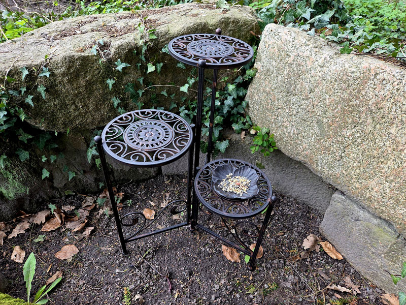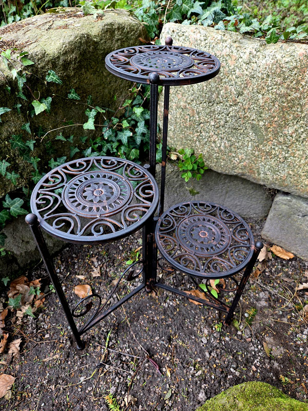 - Mit drei Ablagen mit je 21cm Durchmesser auf verschiedenen Ebenen zum höhenversetzten Aufstellen von Pflanztöpfen und anderen Deko-Artikeln