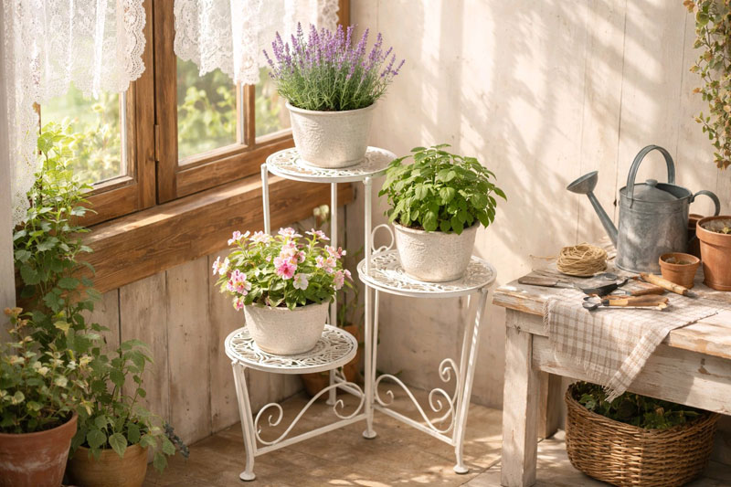 Nostalgische Pflanztreppe aus Metall
