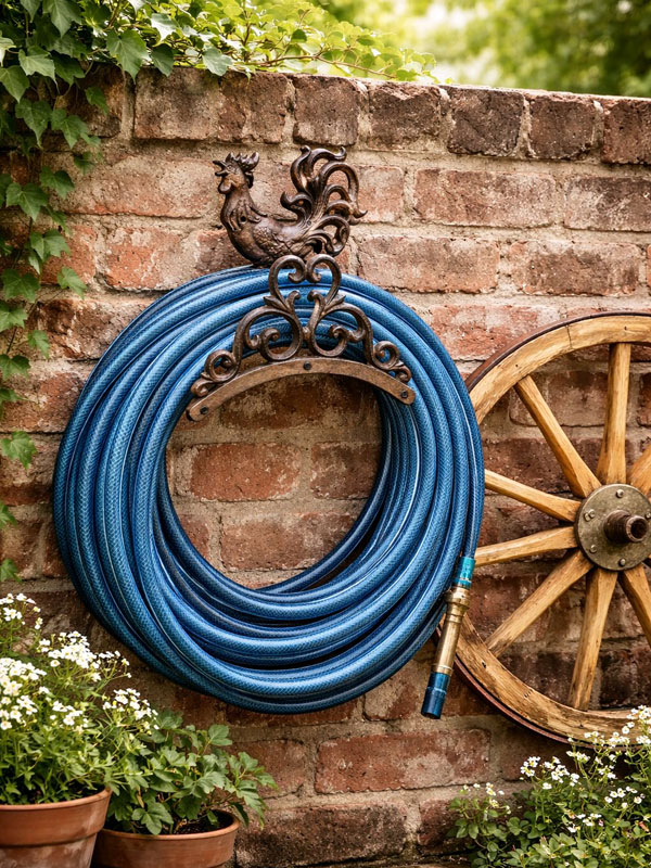 - Schlauchhalter aus hochwertigem, massiven Gusseisen, antik-braun patiniert