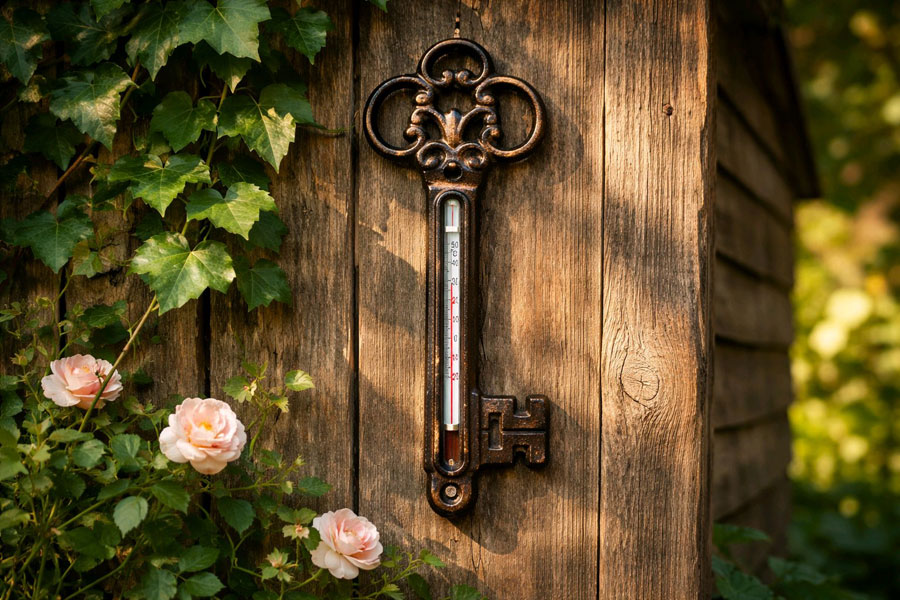 Dank des robusten, wetterfesten Materials eignet sich das Schlüssel-Thermometer ideal für den ganzjährigen Einsatz im Außenbereich und entwickelt mit der Zeit eine charaktervolle Patina.