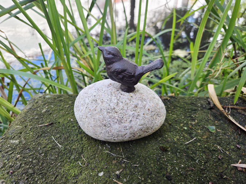 - Vogel aus hochwertigem Gusseisen montiert auf einem schönen Naturstein