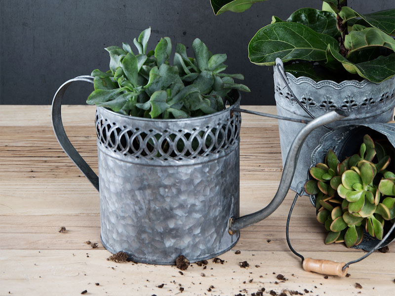 Verzinkte Landhaus Deko-Gießkanne zum Bepflanzen Pflanzkanne