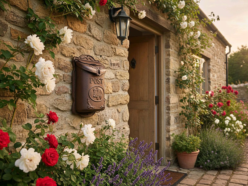 Der Briefkasten verfügt über eine schmale Einwurföffnung für Briefe sowie eine große, praktische Entnahmeklappe, die das Herausnehmen der Post besonders bequem macht. Verwendest Du ihn im ungeschützten Außenbereich, entwickelt er mit der Zeit eine charaktervolle Patina und setzt an Hausfassaden, Hofeingängen oder Stalltüren einen dekorativen Akzent.