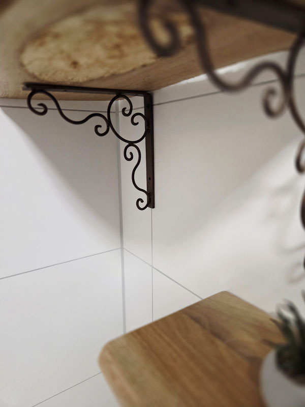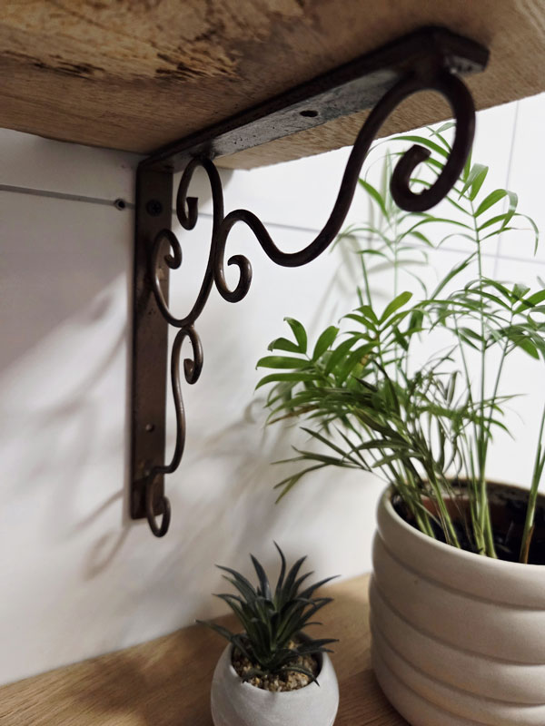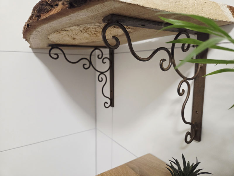 Antik gearbeiteter Regalbodenträger aus nostalgischem Schmiedeeisen