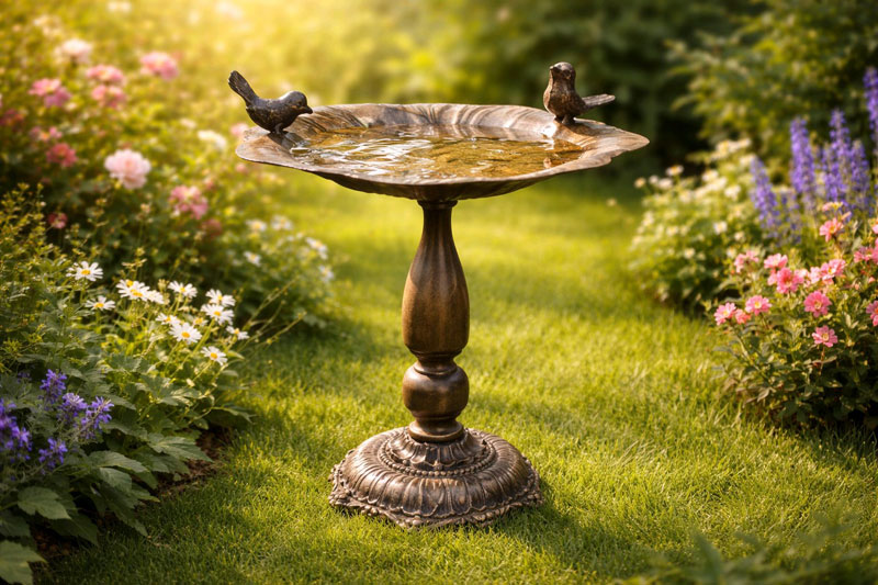- Nostalgische Vogeltränke aus rostfreiem Aluguss gefertigt