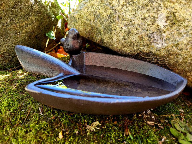 Gusseiserne Vogeltränke "Schaufel" mit Vögelchen
