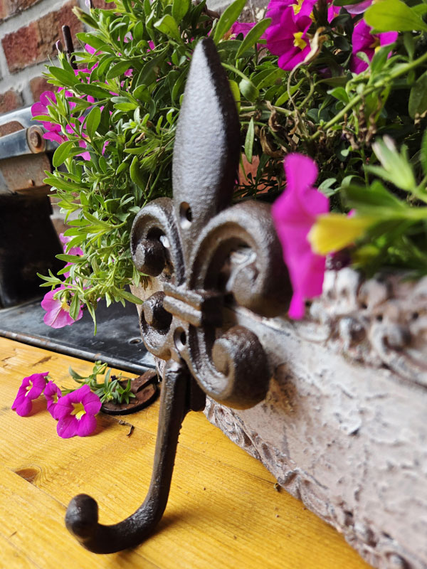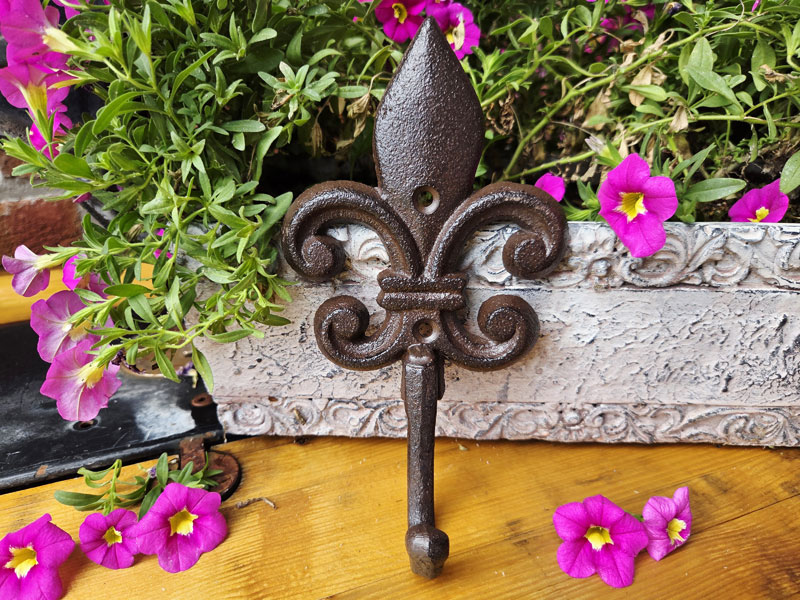 Aufwendig gearbeiteter Wandhaken "Lilie" aus antik gehaltenem Gusseisen